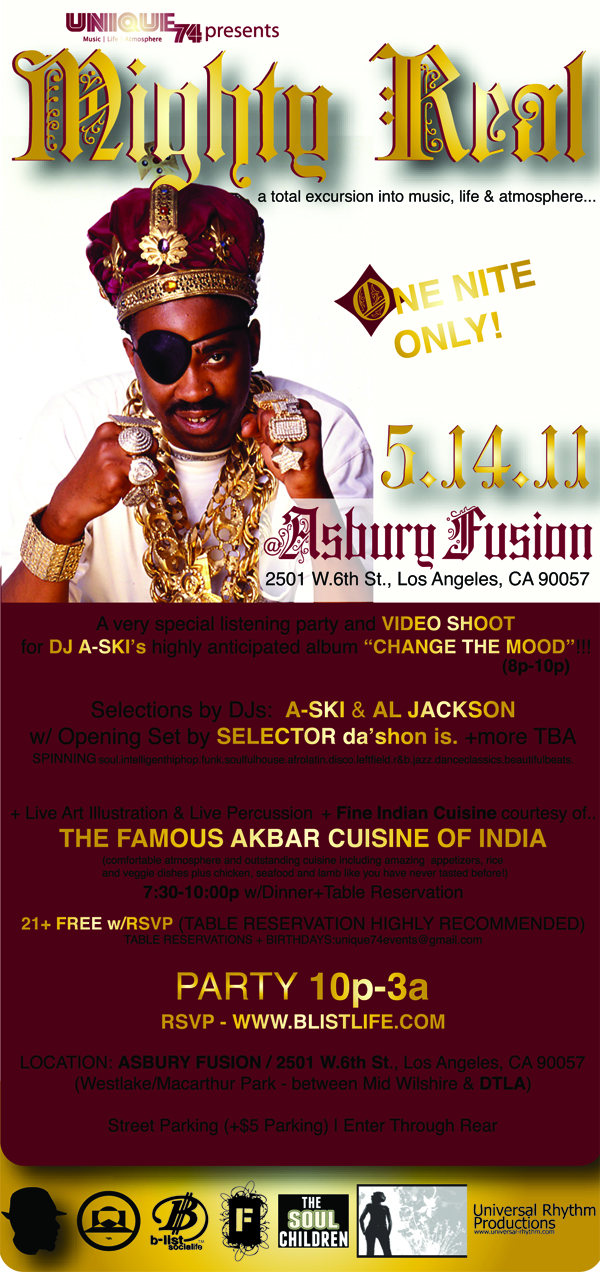 A very special listening event plus video shoot for DJ A-Ski‘s upcoming album release “CHANGE THE MOOD”!! (8p-10p)